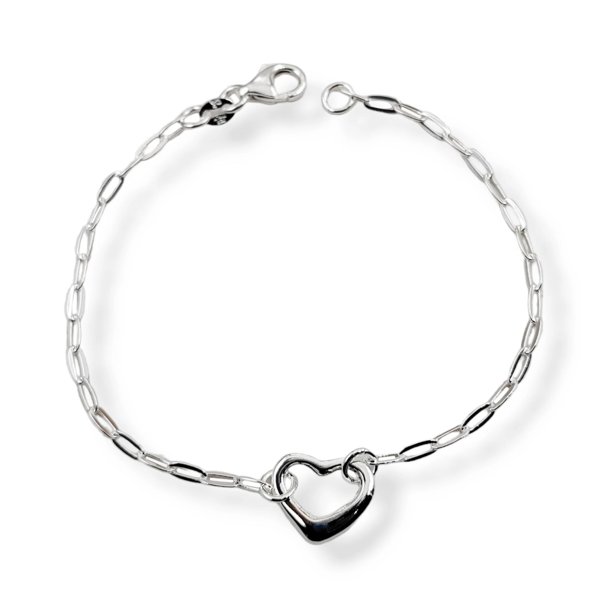 The DORA bracelet combines a sleek paperclip chain with a chunky open heart centerpiece — a symbol of self-love and effortless confidence. Wear it solo or layer it up.