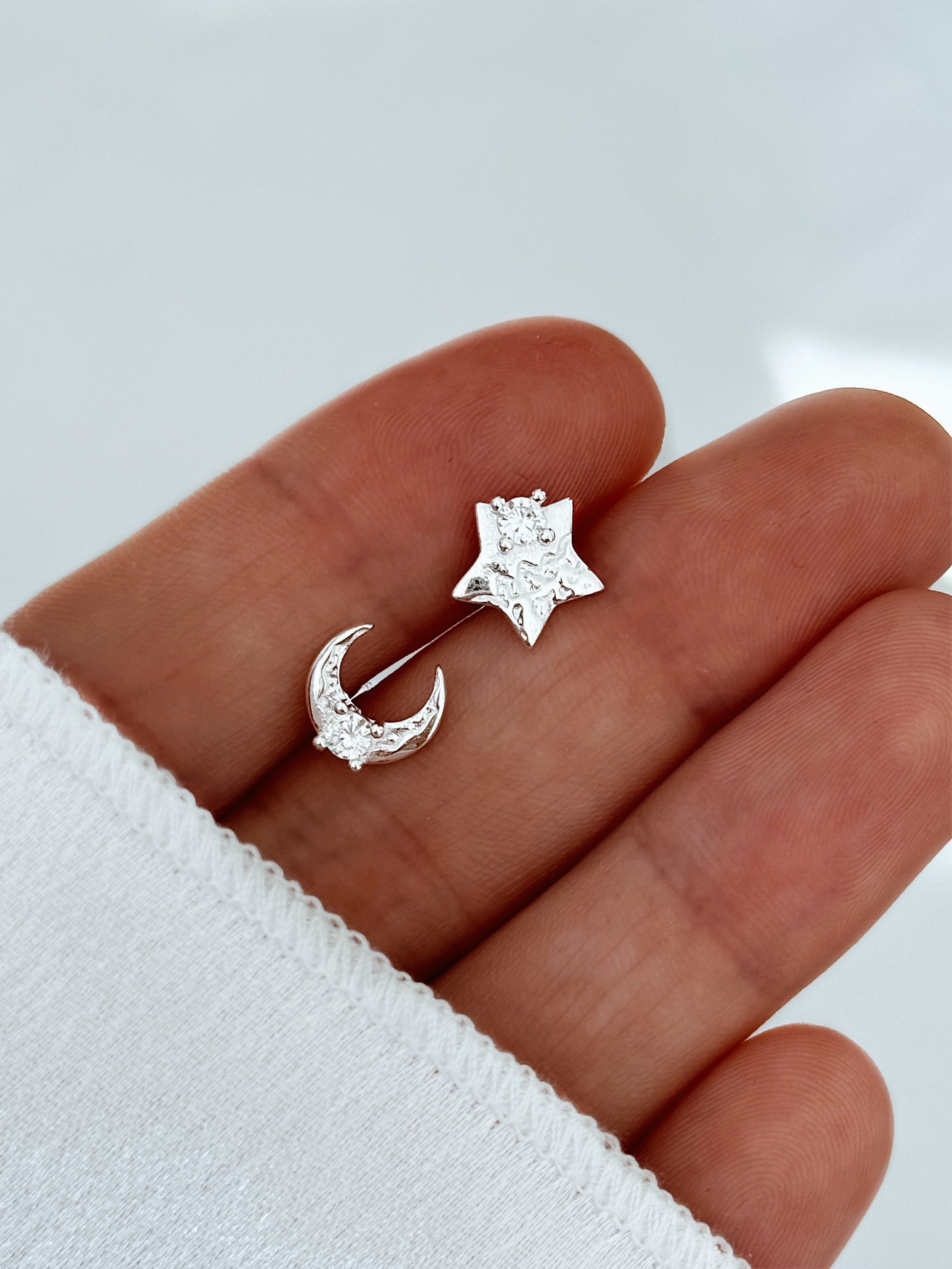 ✔️ Design: Asymmetrical moon and star set