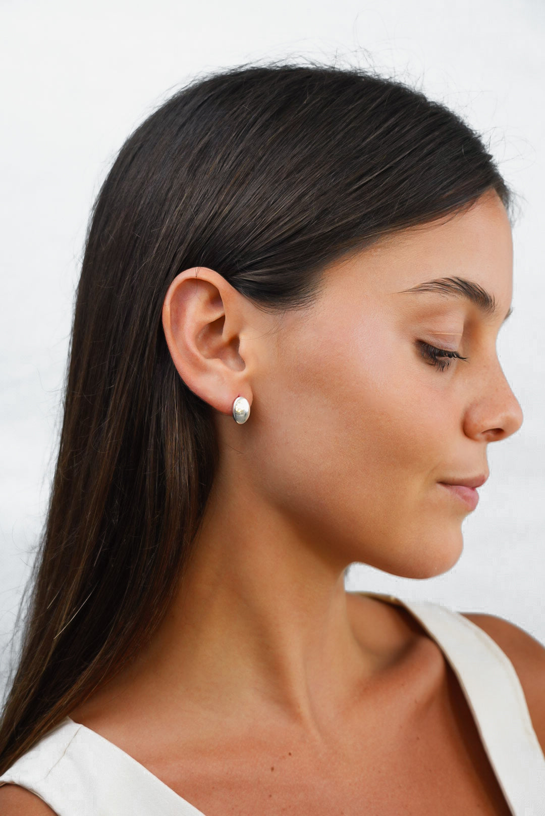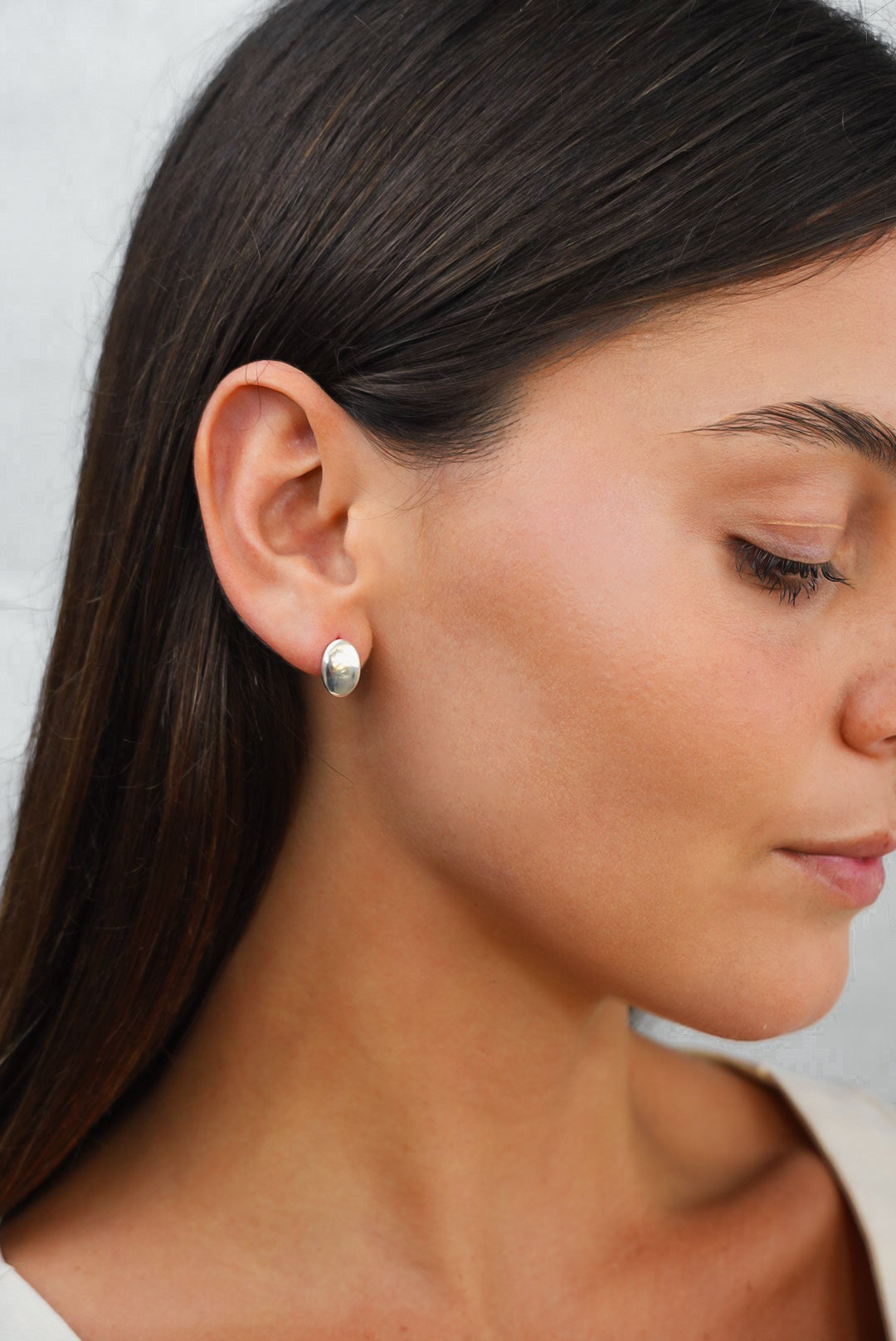 The MORA studs feature a chunky oval silhouette with a mirror-like finish—clean, confident, and effortlessly chic.