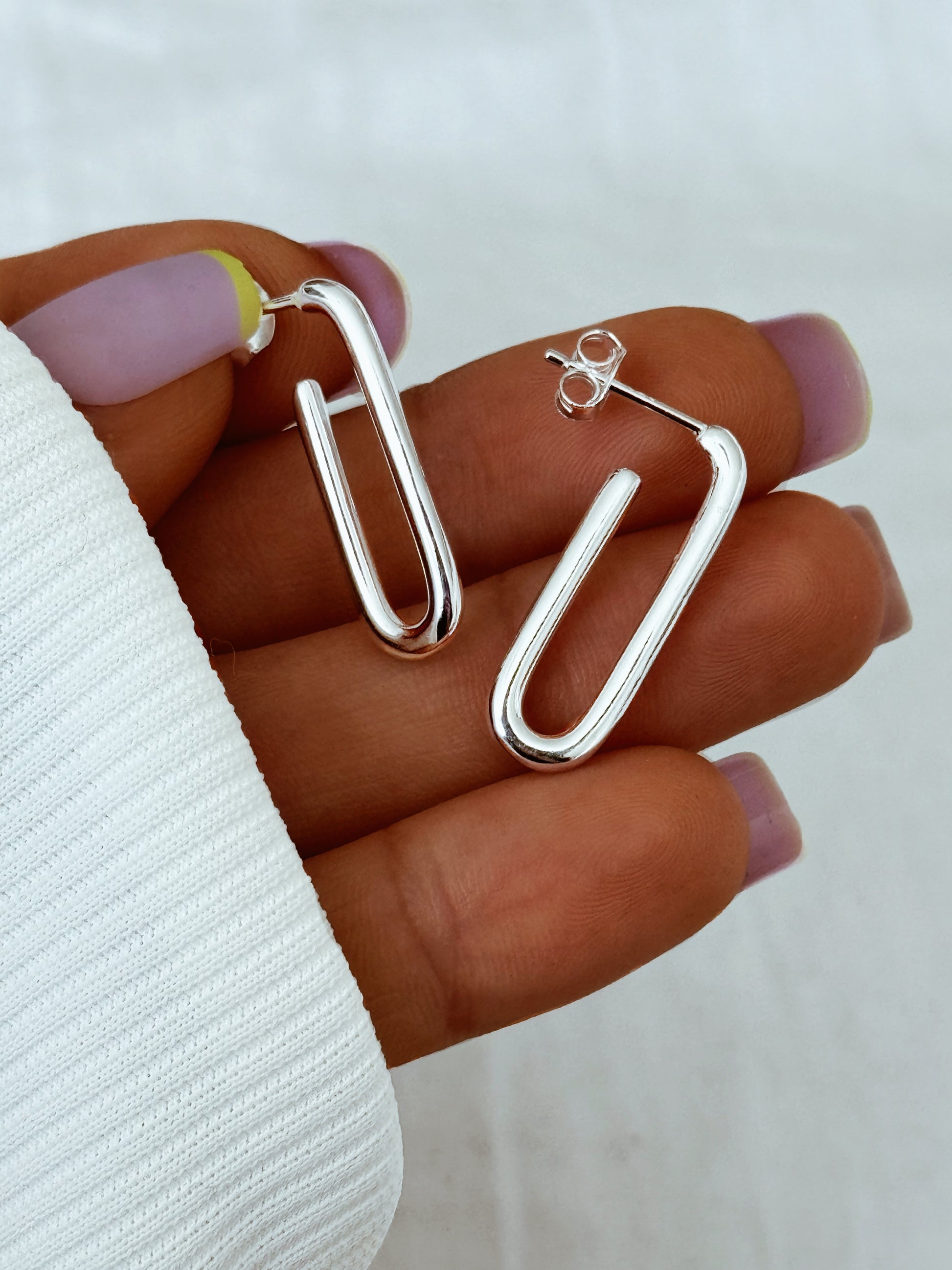 The Naomi earrings feature a bold rectangular drop shape with a sleek, polished finish—perfect for elevating your everyday look with a modern edge.