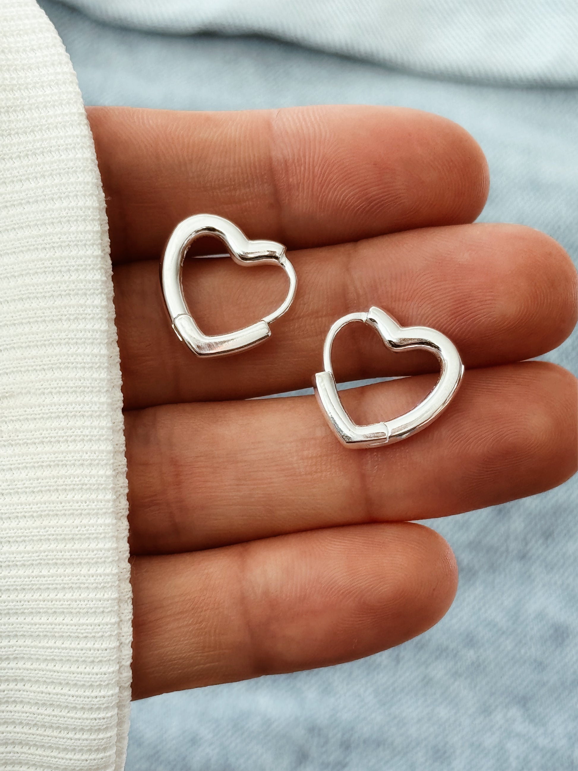 The Mar earrings are chunky heart-shaped huggies crafted in solid sterling silver. Minimal and full of attitude, they add a touch of modern romance to any look.