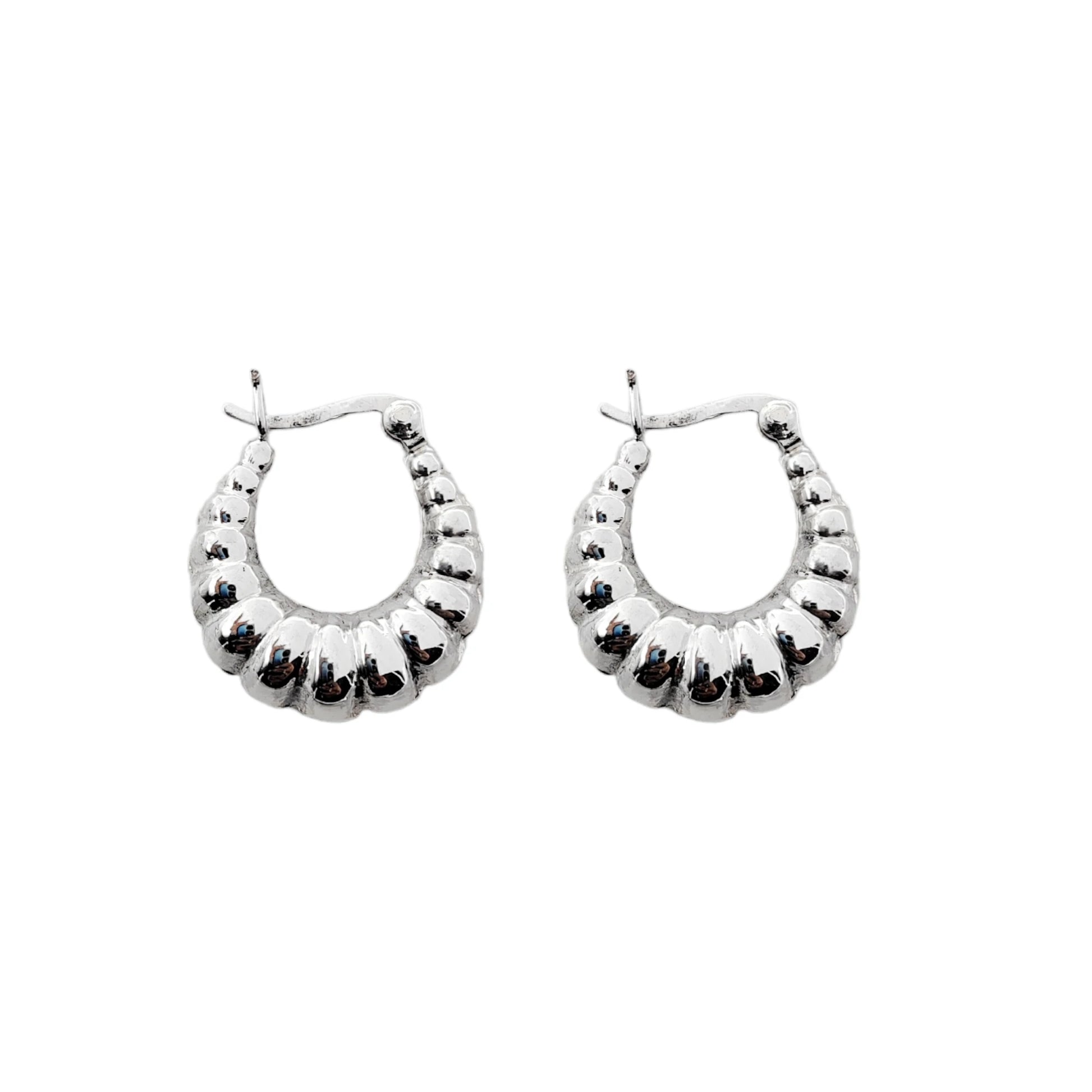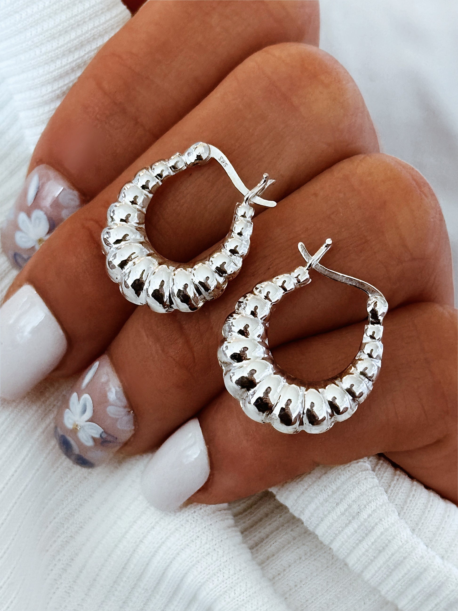 The Margaret earrings feature a chunky, ridged hoop design that instantly elevates any outfit. Bold yet versatile, they’re perfect for both casual and dressy days.