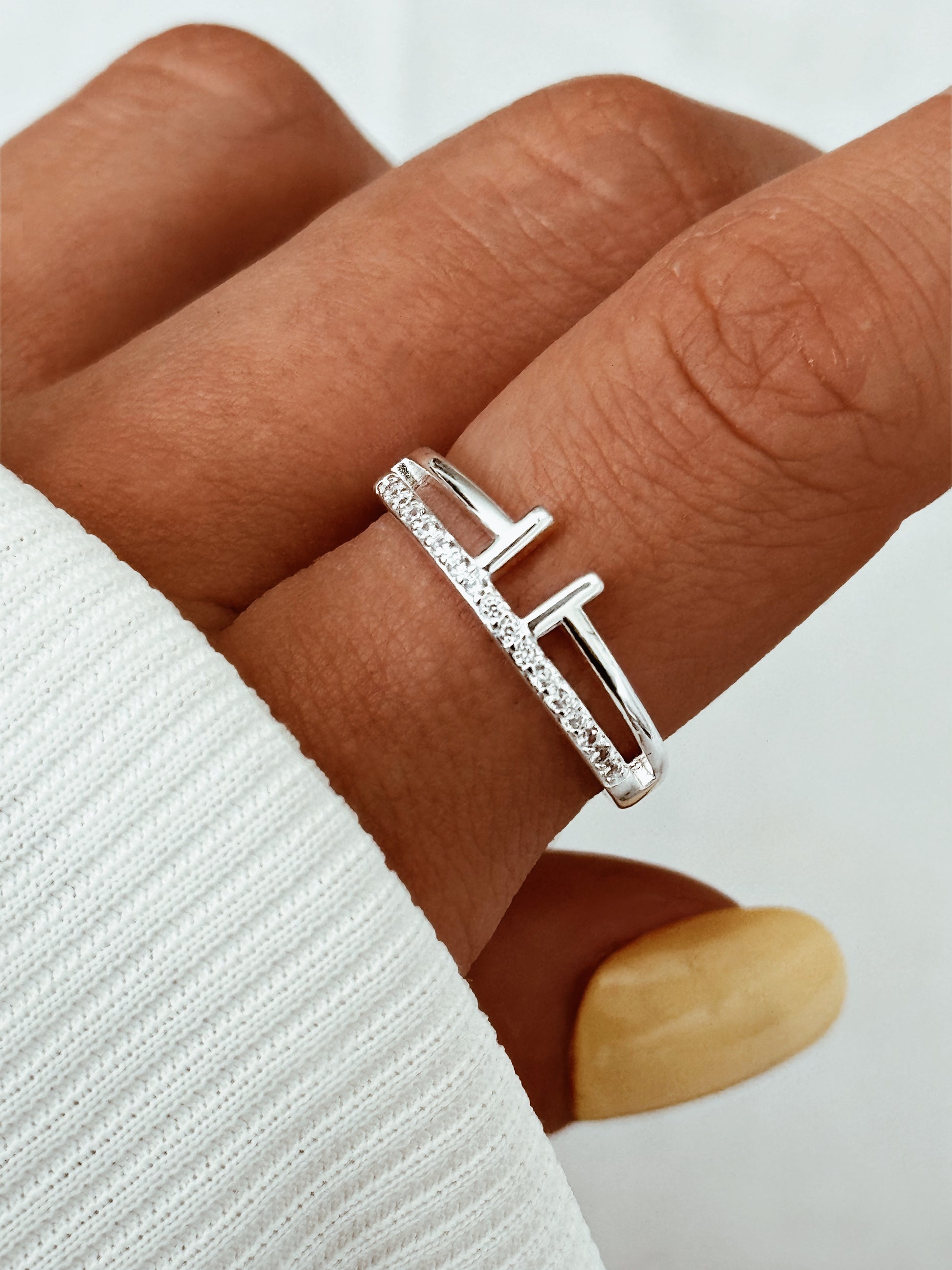 ✨ T-Bar Pavé Ring – 925 Sterling Silver + Cubic Zirconia