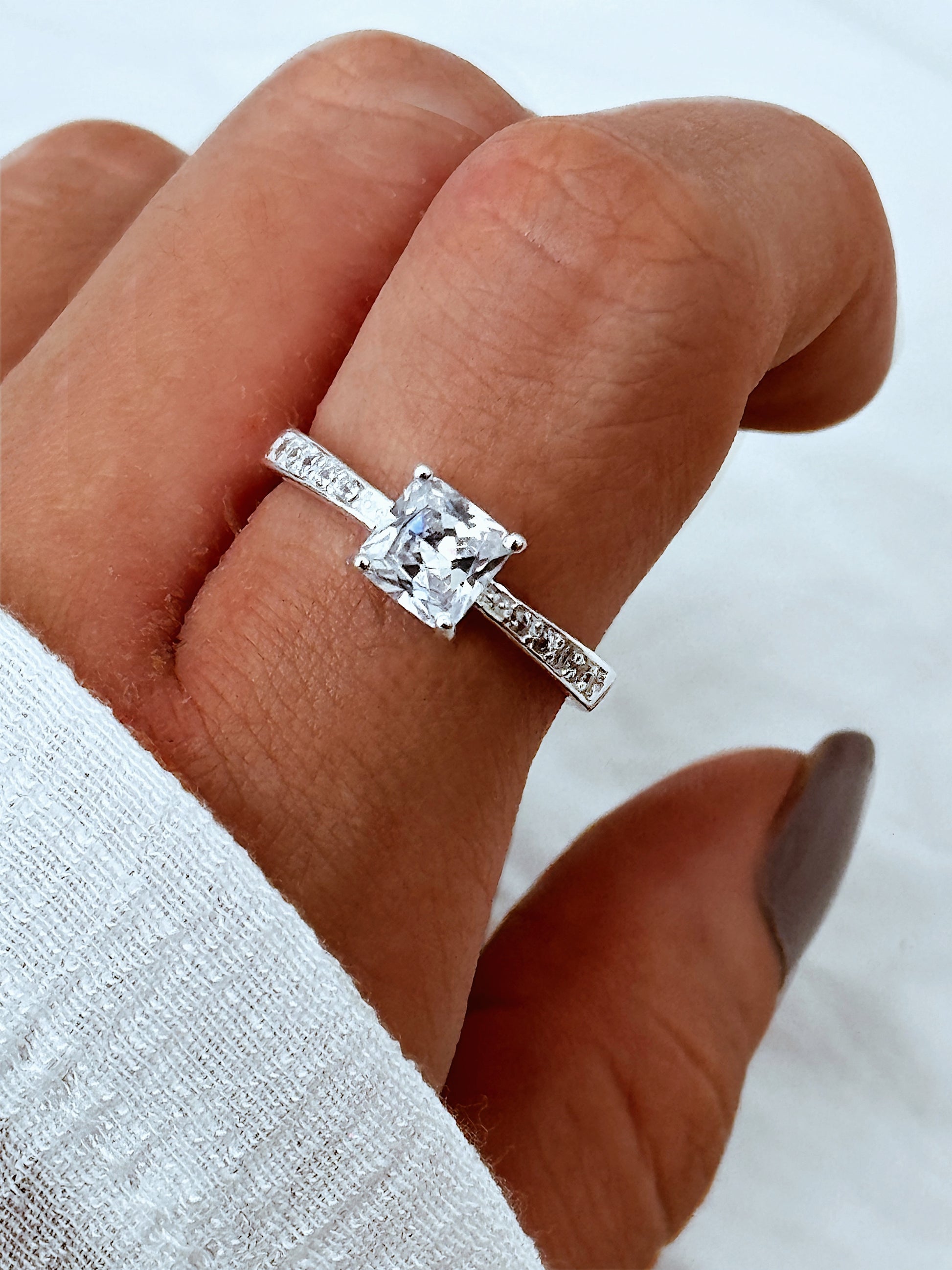 Square Spark Ring – 925 Sterling Silver & Cubic Zirconia.