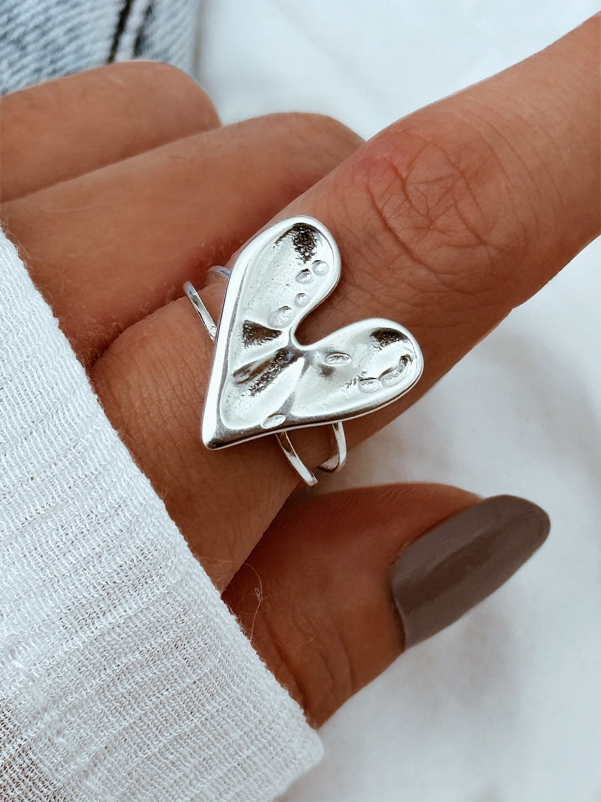 The Melted Heart Ring features an abstract heart design with a fluid, organic shape—perfect for expressing love with a modern twist. Made in 925 sterling silver, it’s bold, playful, and unapologetically unique.